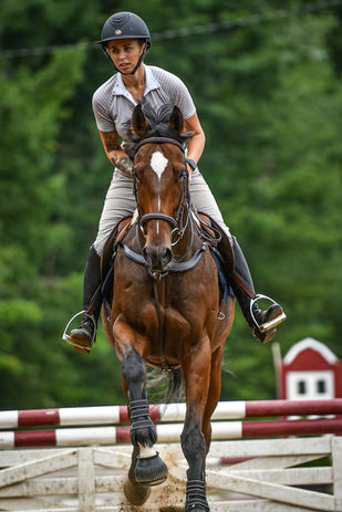 Dream is well started on counter canter, shoulder in, haunches in, leg yields, has good simple changes & is easy in the bridle. Dream has competed in the Hunter & jumper ring up to 2’6 and schooled to 3’. I have not met a jump that he won’t go over - fill it all the way up or put a liverpool under it and he doesn’t bat an eye. He is not hot to jump, just keeps a consistent canter. Whatever you tell him to do, he’s doing it. He makes it down the line no problem, or you can adjust and add a stride with just a half halt.